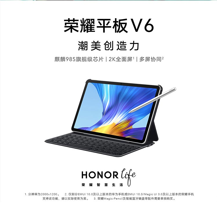 - 商品名称:平板电脑荣耀平板V6 10.4英寸麒麟985芯片 WIFI6娱乐游戏学习平板ipad 2K全面屏 【WIFI版】6G+128G 钛空银 标配(含保护套钢化膜)